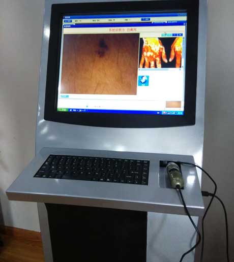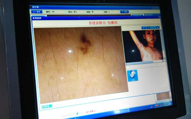 皮肤镜检查是一种在人体上应用且的诊断技术,它可以放大皮肤,观察到表皮、表皮和真皮交界及真皮乳头的颜色和结构,肉眼往往难以观察到这些颜色和结构。先进的光谱成像技术,可透视到皮肤基底层,能够观察皮肤颗粒层以上的微细变化,在诊断色素改变性疾病及判断其黑色素缺失方面有着无可比拟的优势。逐渐成为国际上推广、普及的色素性皮肤病诊断工具。